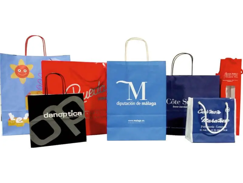 En nuestras tarifas están incluidos el marcaje, cliché, y los portes gratuitos a península. Puedes elegir varios tipos de bolsas de papel para comercios